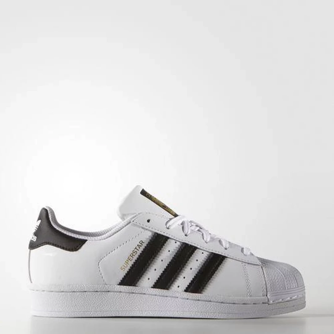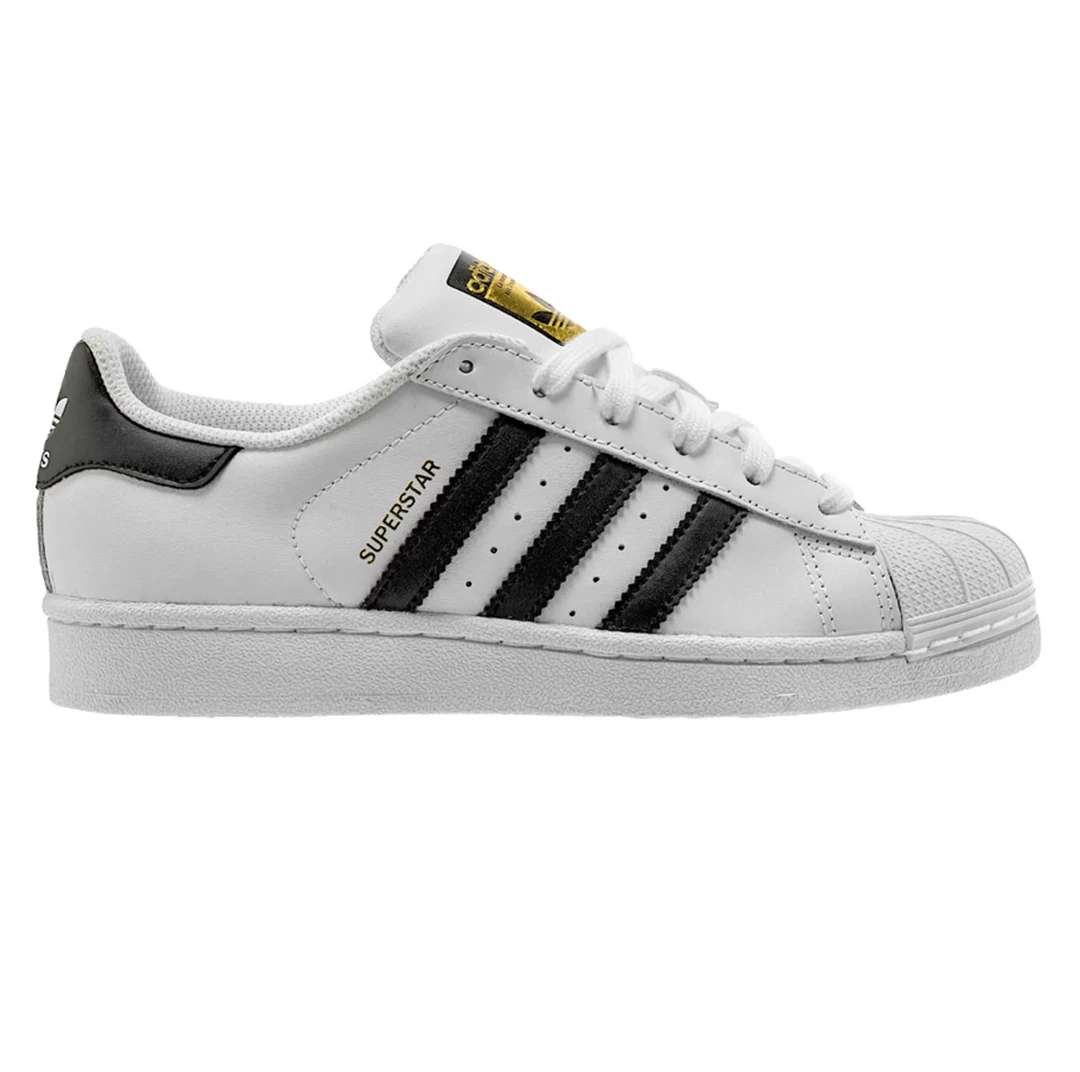 - This adidas Superstar Junior in the timeless “White/Black” colorway allows children to wear a piece of sneaker culture history, as the Superstar has been worn and made famous by luminaries such as Run DMC, Kareem Abdul-Jabbar, and many more