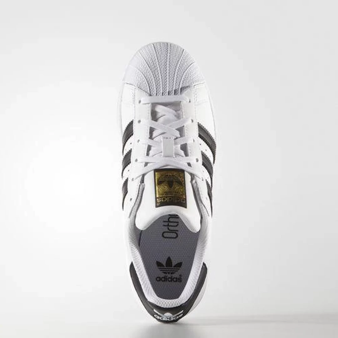 - The white rubber shell toe is a signature design element of the adidas Superstar