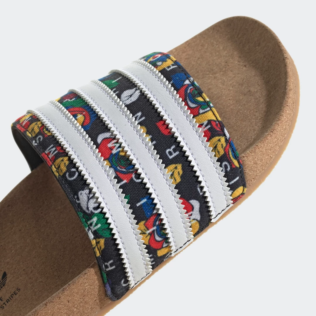 A leap of faith. A bold romantic gesture. Sometimes all you have to do is take a chance to see what can come from it. Made in collaboration with South African designer Rich Mnisi, these adidas Adilette Slides pay tribute to the magic of romance with a Colorful rose graphic on the canvas upper. A cork footbed keeps you comfortable every step of the journey.